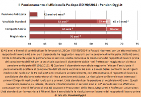 facoltà di procedere al collocamento d'ufficio i lavoratori che abbiano raggiunto i requisiti per la pensione anticipata (41 anni e 6 mesi per le donne e 42 anni e 6 mesi per gli uomini) all'età di 62 anni. La legge prescrive che la decisione della Pa dovrà essere in tal caso motivata