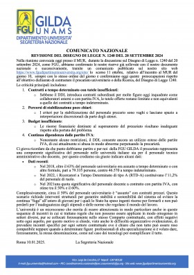 Così in una nota la Federazione Gilda Unams, Dipartimento Università