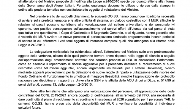 Comunicato Nazionale - resoconto incontro ARAN del 31 ottobre 2025 sul rinnovo del CCNL 2022-2024 – Sezione Università
